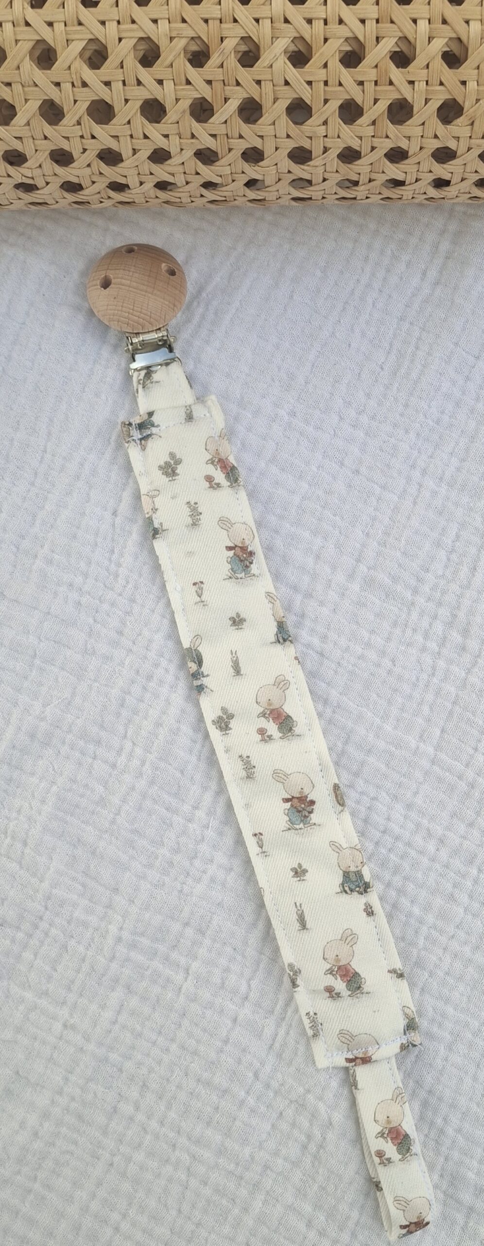 Mantén el chupete de tu bebé a mano y seguro, con este preciosos chupetero de tela. su diseño en tonos suaves con estampado delicado aporta un toque tierno y elegante, ideal para el día a día.
