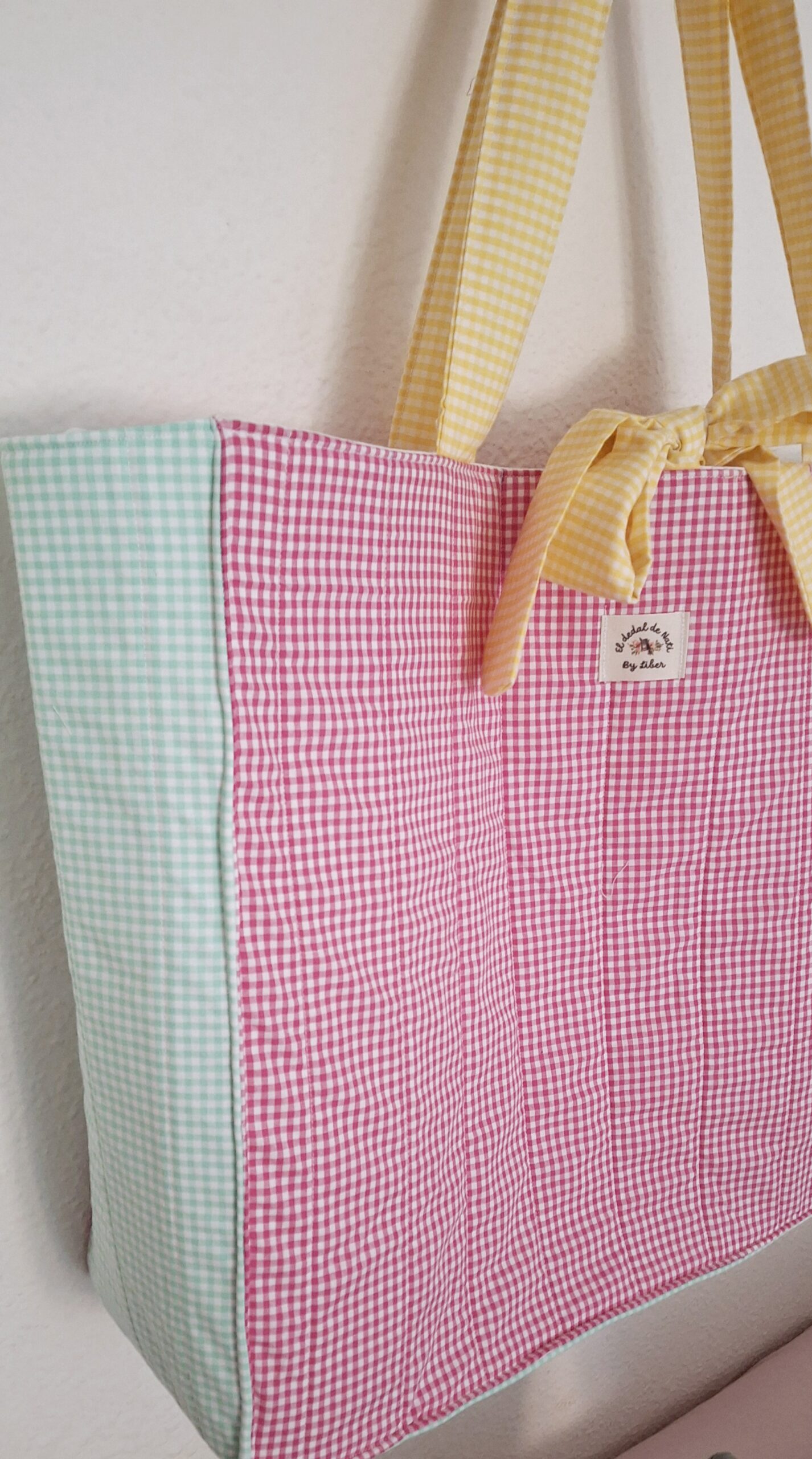 Maxi tote bag, nuestro bolso más grande, su tamaño hará que coja todo lo necesario para un día de piscina, playa, para viajes, gimnasio…